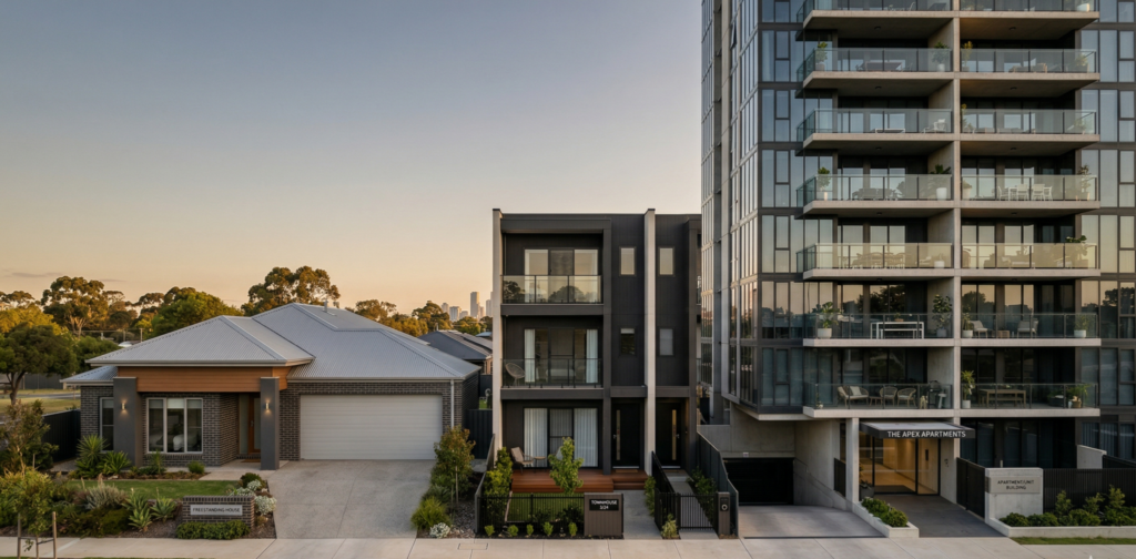 - Townhouses often sit in the middle: more affordable than houses in similar areas, more house-like appeal than many apartments, and sometimes a meaningful land component — but title type and strata rules can change the numbers.